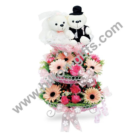 7” Wedding Bear with 3 Tier Flower Arrangement